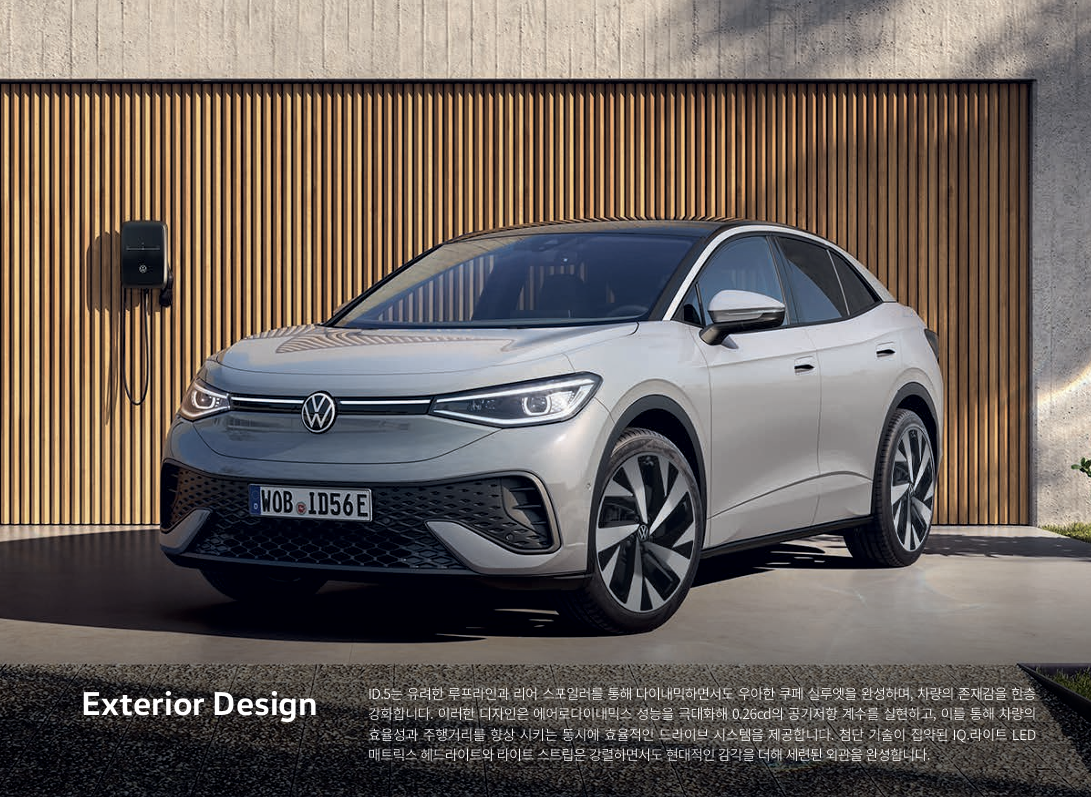 ID.5는 스포티한 쿠페형 SUV 스타일, 강력한 퍼포먼스, 최첨단 기술력을 모두 갖춘 프리미엄 전기 SUV입니다.