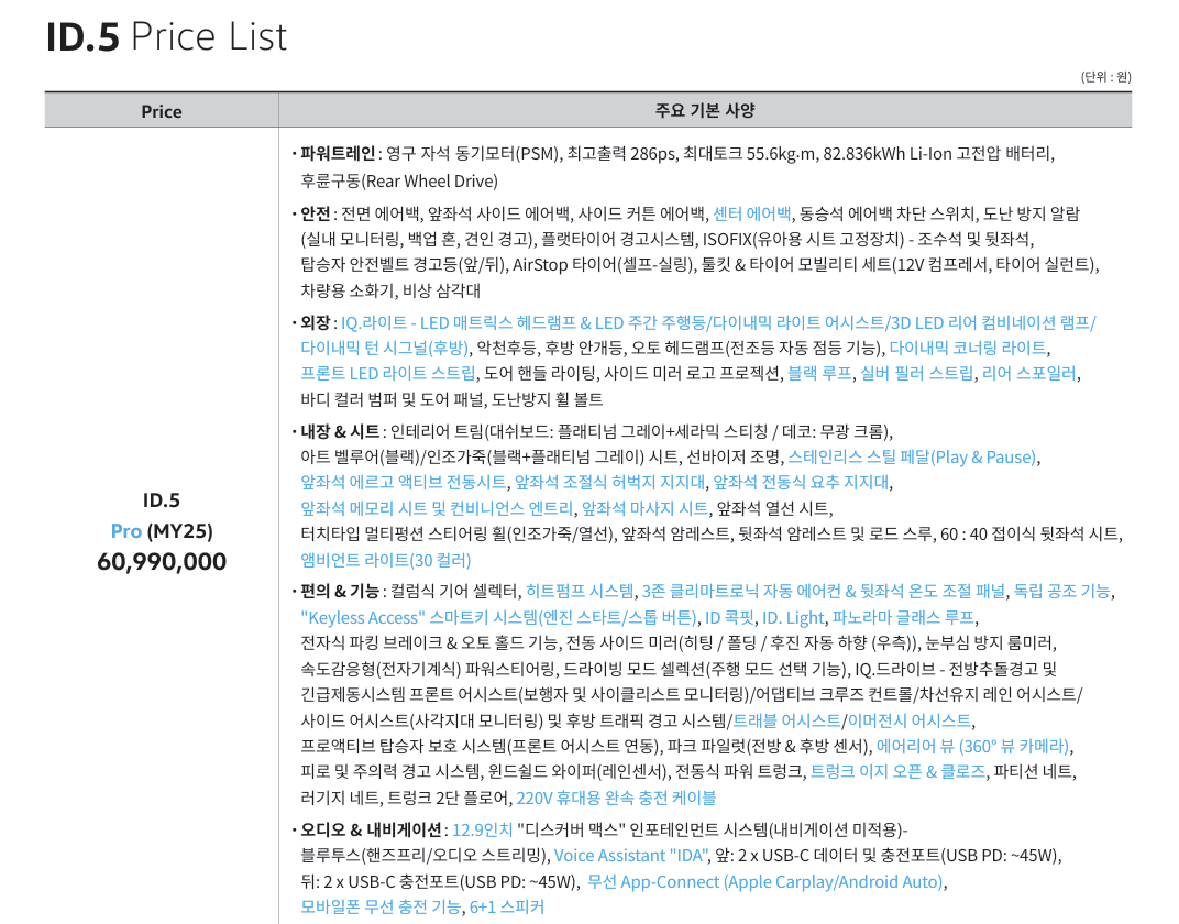 지금부터 2025 폭스바겐 ID.5 가격, 제원, 주행거리, 기능을 차량 전문가 시각으로 세부 분석해드립니다.